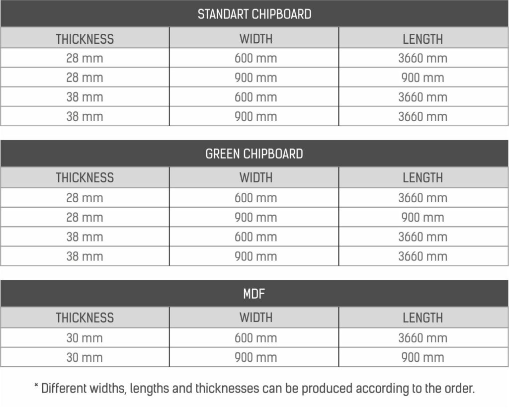 Panelurile acrilice sunt realizate prin lipirea bazelor MDF de calitate E-1 de 16 mm sau 6 mm grosime cu foi acrilice de 1 mm grosime și un strat de polistiren cu suprafață de cuarț fin de 0,65 mm grosime, folosind adeziv poliuretanic sub presiune în linia de laminare plată.